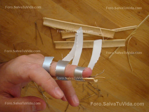 Luego, con la cinta sobrante lo uno al dedo contiguo para afirmarlo.